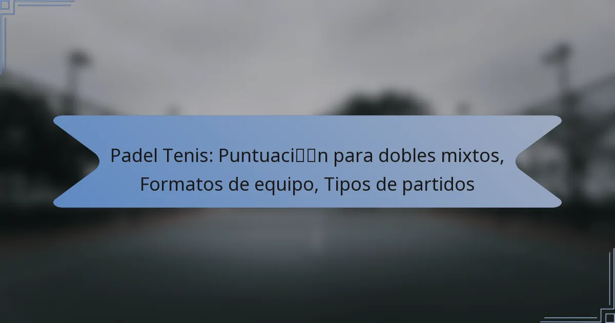 Padel Tenis: Puntuación para dobles mixtos, Formatos de equipo, Tipos de partidos